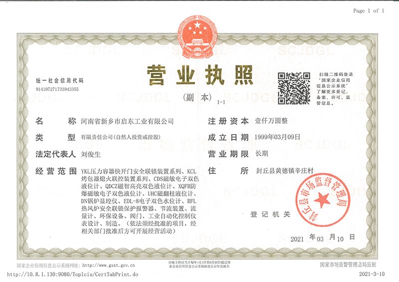 河南省新鄉(xiāng)市啟東工業(yè)有限公司始建于1987年,是專注研發(fā)、生產(chǎn)自動(dòng)化儀器儀表(主要與壓力容器、鍋爐等容器配套使用)的廠家。主要產(chǎn)品有液位計(jì)(磁敏雙色型、磁翻柱型等)系列、烤包器熄火聯(lián)控裝置系列、壓力容器快開門安全聯(lián)鎖保護(hù)裝置系列、鍋爐報(bào)警器系列。二十多年來,公司產(chǎn)品暢銷國內(nèi)并遠(yuǎn)銷俄羅斯、蒙古與東南亞,深得廣大用戶的信賴和好評(píng)。我們多年來致力于自動(dòng)化儀器儀表的研制生產(chǎn),公司現(xiàn)具有完善的生產(chǎn)、試驗(yàn)、檢測(cè)手段和設(shè)備。科技創(chuàng)新、誠信服務(wù),是我們不變的經(jīng)營(yíng)理念,我們將以強(qiáng)有力的技術(shù)支持及售后竭誠為客戶提供良好的服務(wù)?! ?012年我公司成功研發(fā)了KCL系列烤包器熄火聯(lián)控裝置,并于2013年2月2日榮獲中華人民共和國國家知識(shí)產(chǎn)權(quán)局辦法的《實(shí)用新型**證書》<**號(hào):2021202257735>該產(chǎn)品廣泛應(yīng)用于唐鋼等大型鋼鐵企業(yè),為烤包器安全作業(yè)提供了有力的保障?! ?002年我公司成功研發(fā)磁敏電子雙色液位計(jì)獨(dú)特的高亮度LED紅綠雙色顯示,獲得了專家的首肯和用戶的一致好評(píng)。在此基礎(chǔ)上我公司研發(fā)人員十年磨一劍,致力于XQFB-1防爆型磁敏雙色液位計(jì)的研發(fā),于2013年12月27日由國家防爆電器產(chǎn)品質(zhì)量監(jiān)督檢驗(yàn)中心檢驗(yàn)合格并頒發(fā)防爆合格證書<編號(hào):cnex19.0883>。該產(chǎn)品性能得到了充分的發(fā)揮,廣泛應(yīng)用于含有Ⅱ類A·B級(jí)T1-T4組可燃?xì)怏w或蒸汽與空氣混合形成的爆炸性混合物的0區(qū)、1區(qū)危險(xiǎn)場(chǎng)所。連接用戶DCS或PLC系統(tǒng)實(shí)現(xiàn)遠(yuǎn)距離集中顯示和控制,從而實(shí)現(xiàn)節(jié)能、數(shù)字化管理。為用戶增加了一定的經(jīng)濟(jì)效益和社會(huì)效益,。2014年公司成功申請(qǐng)了夢(mèng)潤(rùn)儀表的logo,新的品牌新的形象,夢(mèng)潤(rùn)儀表是啟東的LOGO, 歡迎新老用戶前來洽談合作?! ∥覀円蝗缂韧刈⒅乜蒲械耐度耄瑧{借產(chǎn)品的不斷更新、加大科技含量,進(jìn)一步拓展市場(chǎng)。我們相信品質(zhì)成就未來,以過硬質(zhì)量、優(yōu)惠價(jià)格、完善的售后服務(wù)熱忱歡迎廣大客戶來我司視察指導(dǎo)、洽談業(yè)務(wù);精誠合作,共創(chuàng)輝煌!
